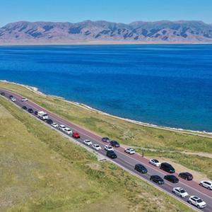 眼下正值新疆旅游旺季,位於博爾塔拉蒙古自治州的賽裏木湖風光宜人,吸引各地游客前來觀光。