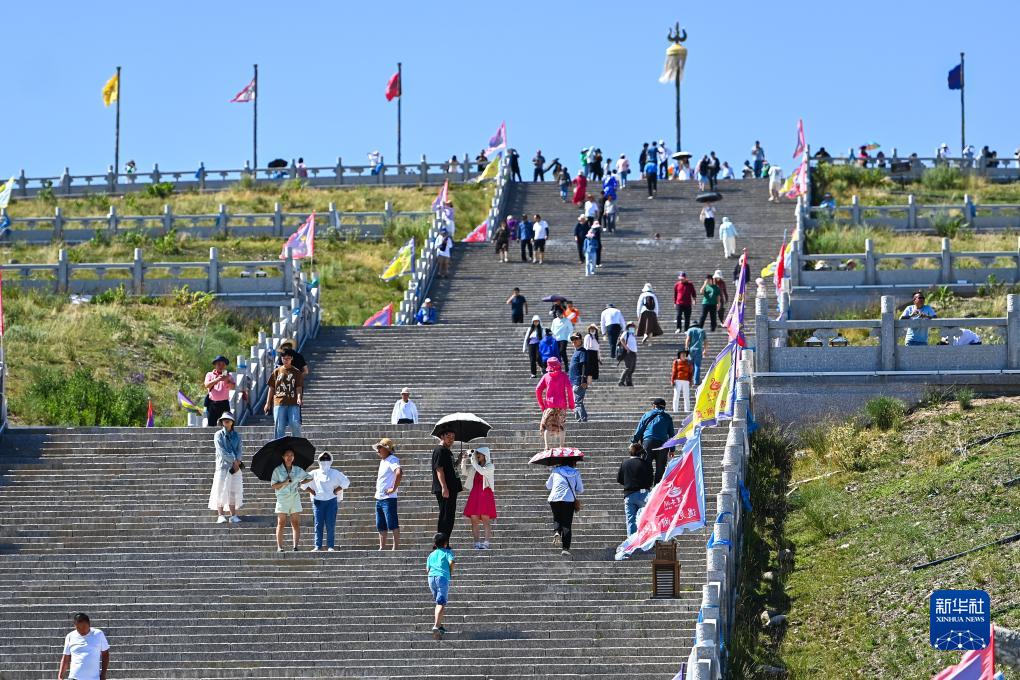 7月25日,游客在新疆賽裏木湖景區觀光。