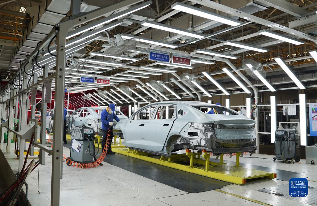 在位於江西省南昌市經開區的江鈴集團新能源汽車有限公司生産基地車間內,工人在生産線上作業(7月18日攝)。新華社記者 周密 攝