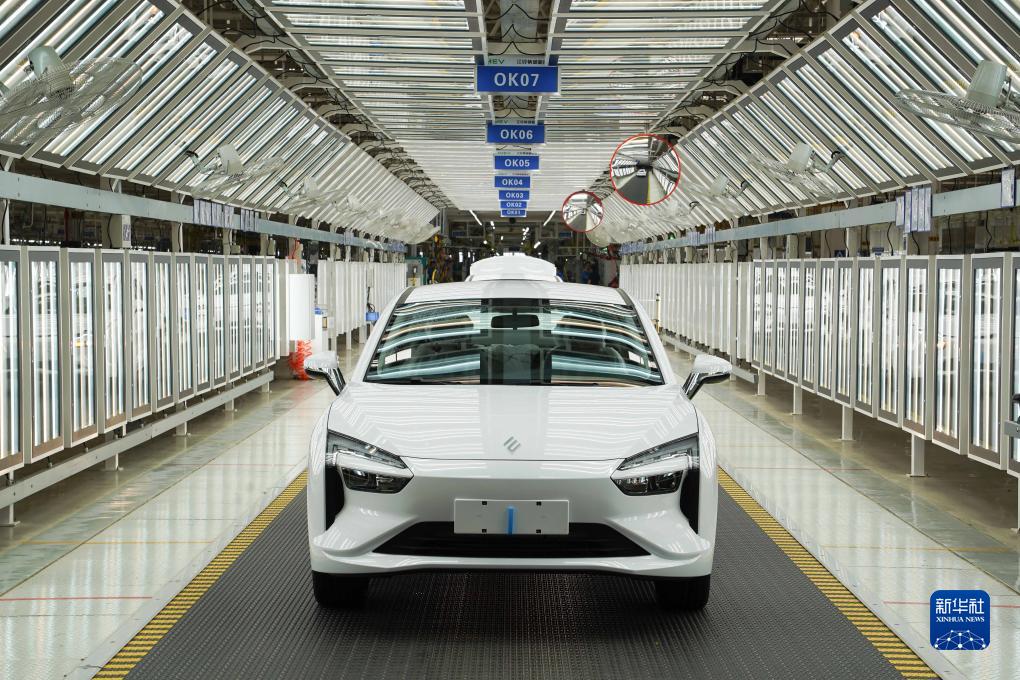 在位於江西省南昌市經開區的江鈴集團新能源汽車有限公司生産基地車間內,汽車在生産線上(7月18日攝)。新華社記者 周密 攝