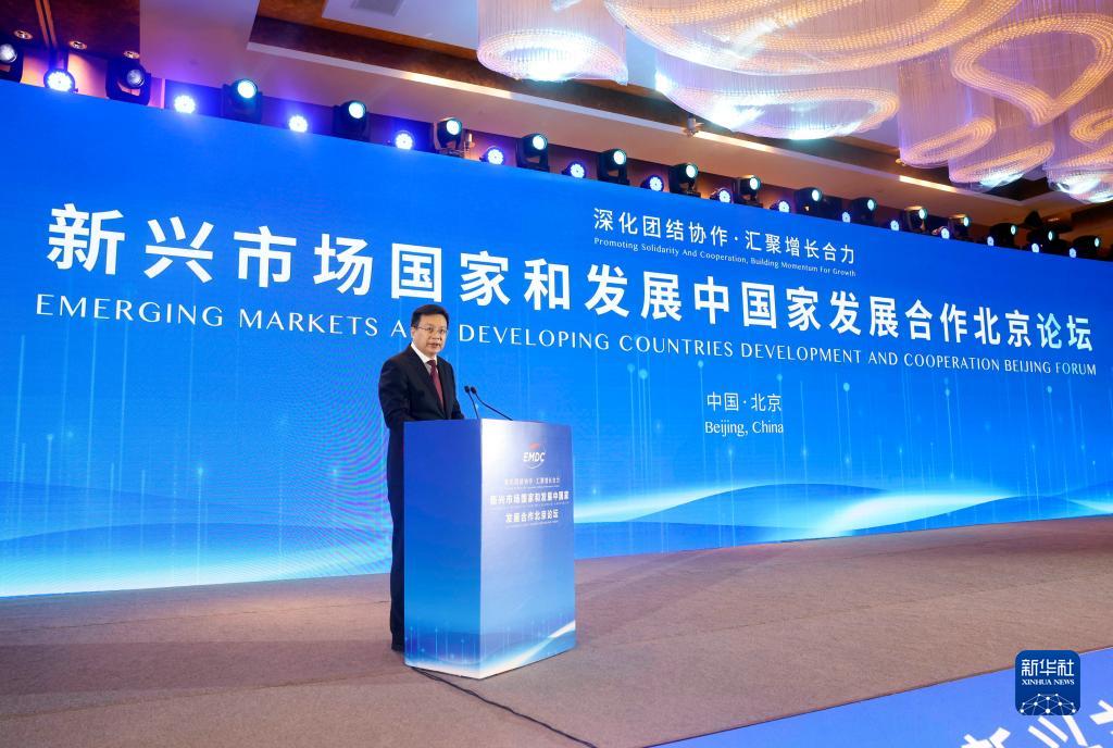 7月25日,新興市場國家和發展中國家(EMDC)發展合作北京論壇在北京舉行。新華通訊社社長傅華在開幕式上致辭。新華社記者 劉衛兵 攝