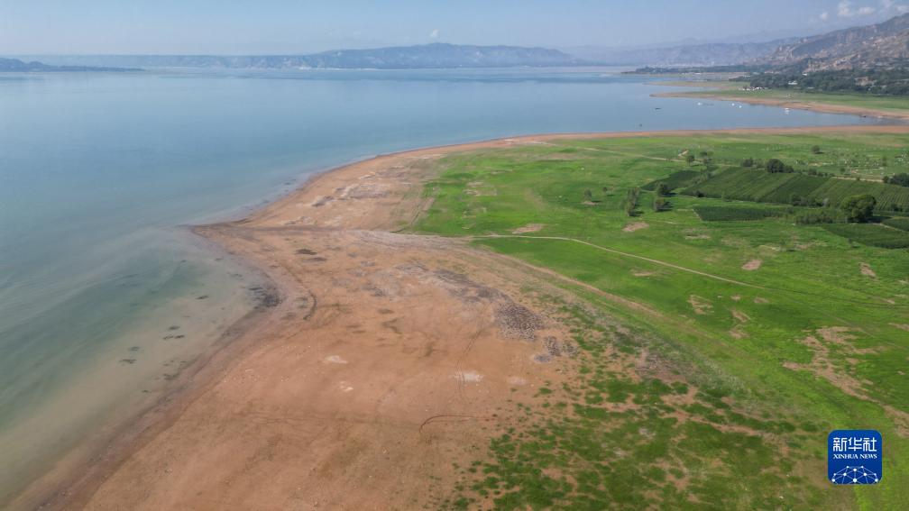 劉家峽水庫水位下降,大片河灘裸露(7月24日攝,無人機照片)。新華社發(史有東 攝)