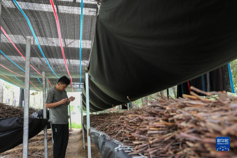 目前,該鎮已發展金蟬養殖600余畝,每畝年收益近萬元,形成一條集金蟬種苗孵化、技術服務、配送銷售的致富新門路。新華社發(何五昌攝)