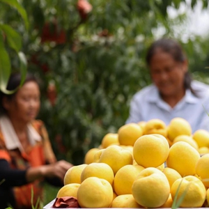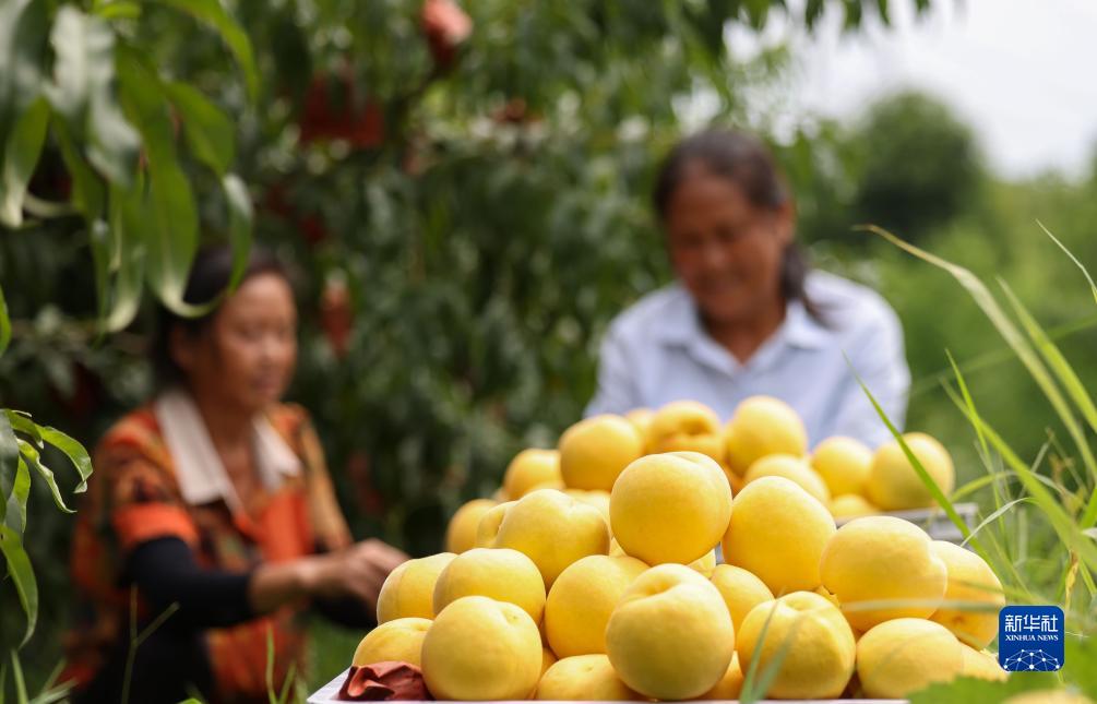 時下,貴州省銅仁市玉屏侗族自治縣種植的黃桃迎來收穫季,果農們忙着採摘、分揀、搬運黃桃,供應市場。近年來,玉屏侗族自治縣把發展黃桃産業列為鄉村振興工作的重要支柱産業,通過&&政策支持、東西部協作資金幫扶、擴大種植面積、發展精深加工等措施,逐步發展壯大黃桃産業,促進當地農民持續增收。新華社發(胡攀學 攝)
