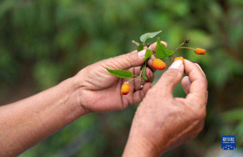 7月23日,張普忠為孩子們找到一種野果。新華社記者 費茂華 攝
