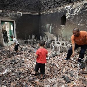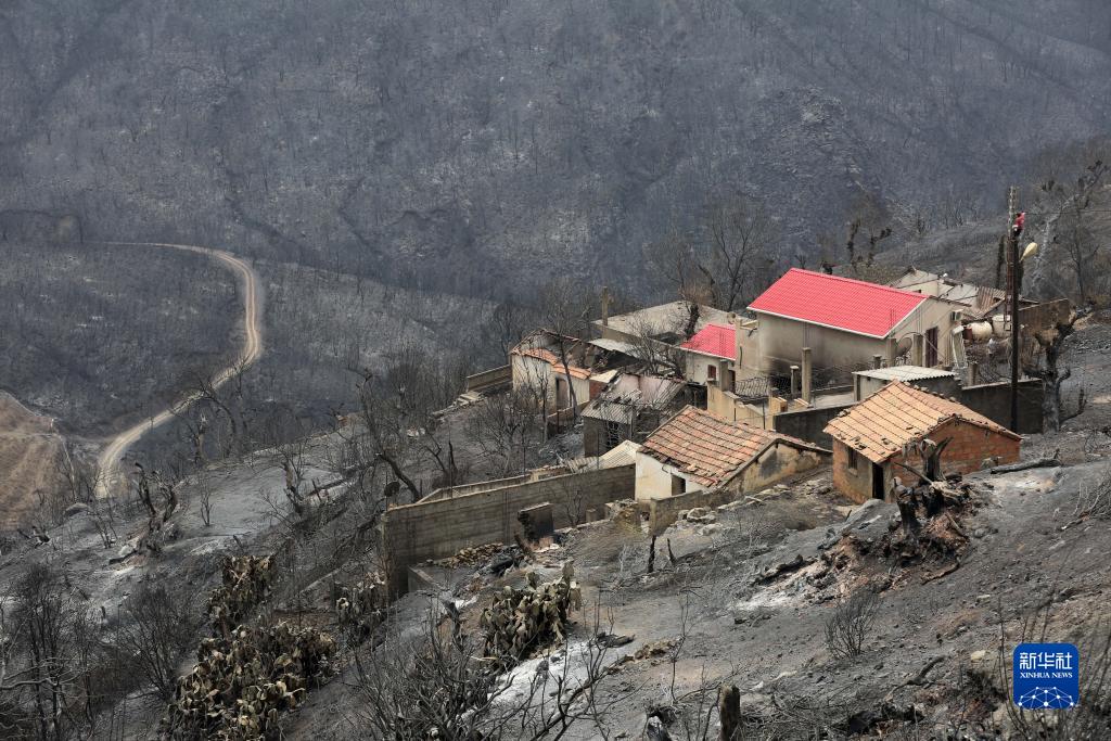這是7月25日在阿爾及利亞貝賈亞省拍攝的被野火燒燬的房屋。