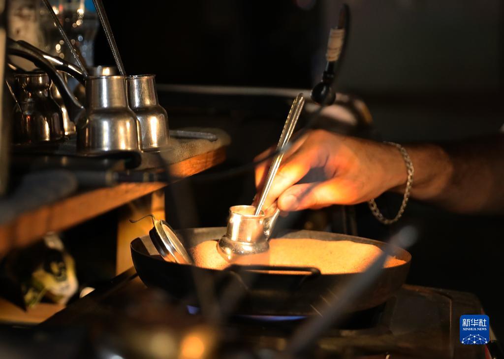 7月25日,在埃及開羅街頭,一名男子用汽車後備箱中的設備製作咖啡。