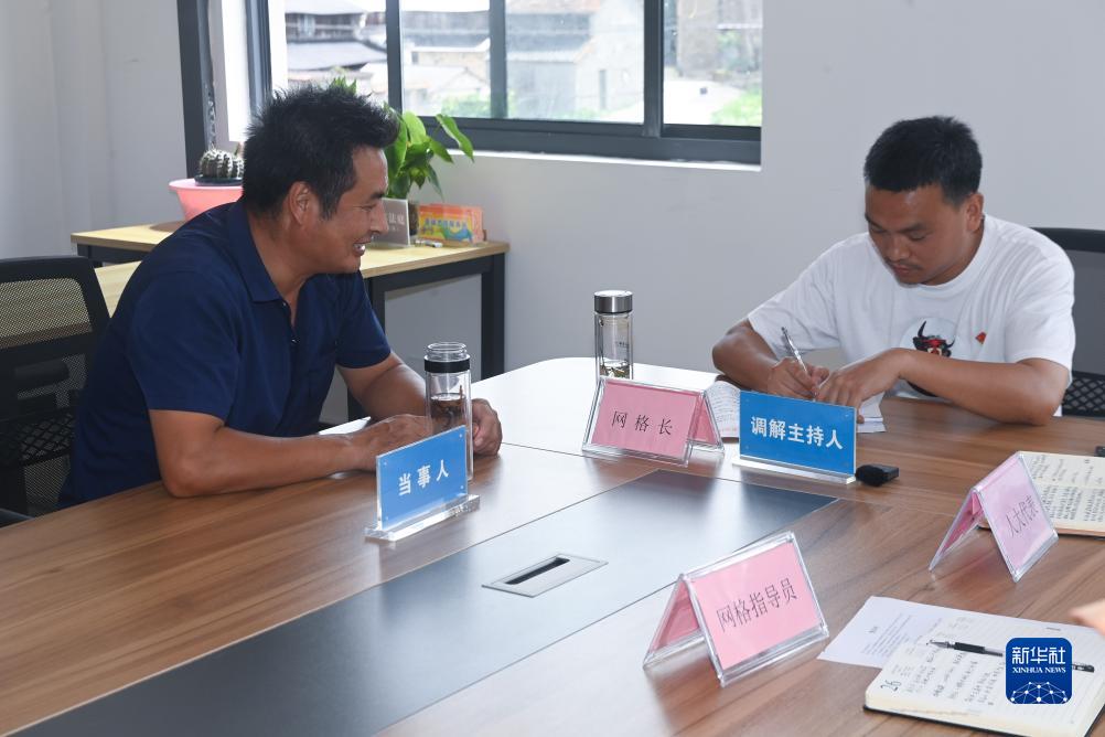 7月26日,在東白湖鎮婁東村新時代文明實踐站的文明共富會客廳內,網格長召集村裏矛盾雙方當事人以及黨員代表、鄉賢代表、人大代表等成員進行宅基地指標糾紛的現場調解。