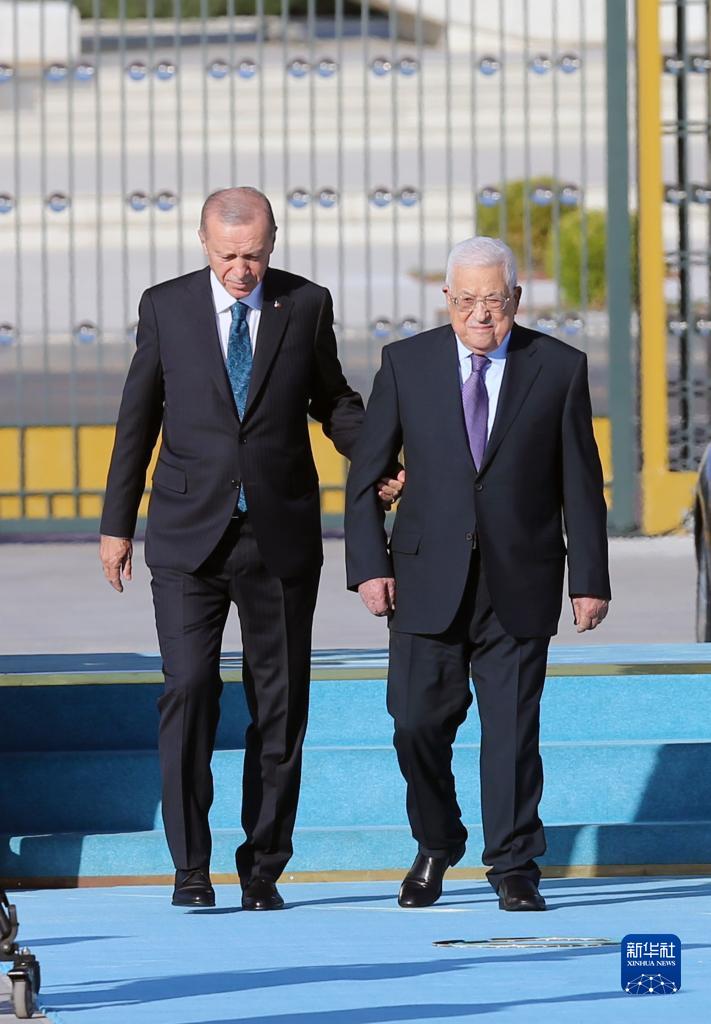 7月25日,土耳其總統埃爾多安(左)在安卡拉歡迎到訪的巴勒斯坦國總統阿巴斯。