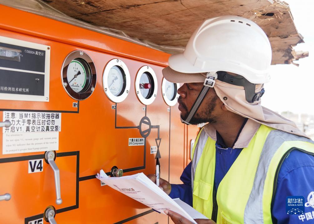 6月12日,大衛在肯尼亞馬查科斯郡孔扎變電站建設工地檢查設備運行情況。