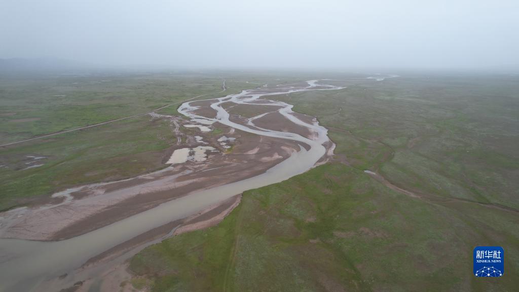 風雪瀰漫中的當曲濕地(7月24日攝,無人機照片)。