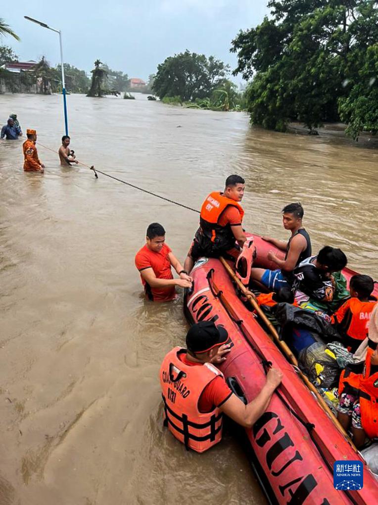 這張菲律賓海岸警衛隊發布的照片顯示,7月26日,救援人員在菲律賓呂宋島的北伊羅戈省冒着洪水撤離受災人員。