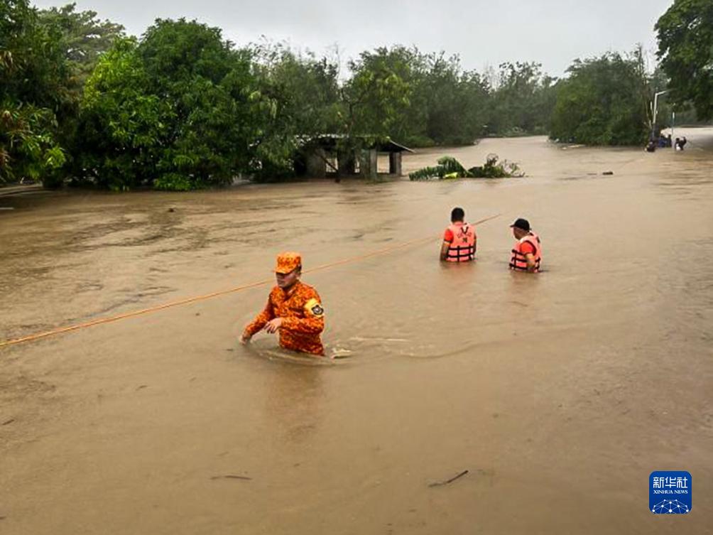 這張菲律賓海岸警衛隊發布的照片顯示,7月26日,救援人員在菲律賓呂宋島的北伊羅戈省冒着洪水參與救援工作。