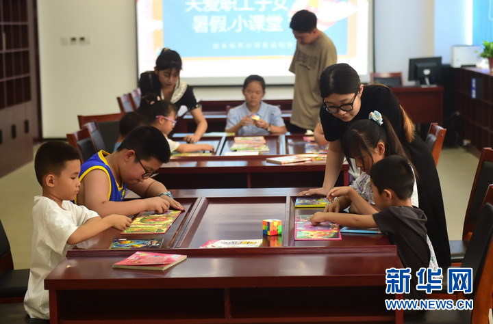 暑假期間,國家稅務總局河北青縣稅務局在機關讀書室舉辦關愛職工子女暑假小課堂,招募返鄉大學生組建小課堂志願服務隊伍,根據孩子們的興趣活動開展繪畫、手工製作、安全教育、心理交流等課程。新華網發(張悅 攝)