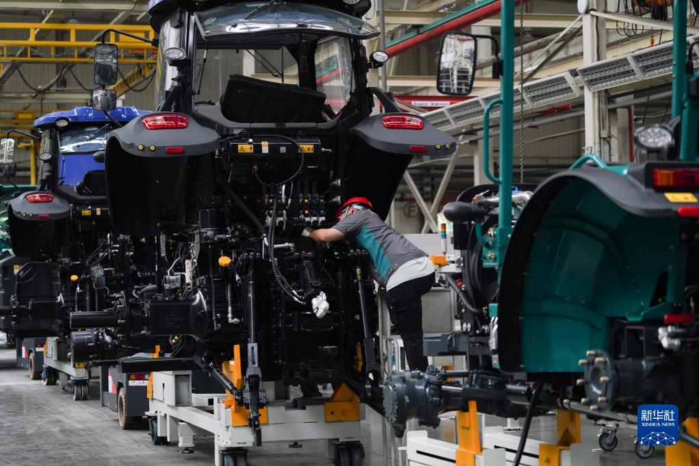 7月26日,在位於濰坊市的濰柴雷沃智慧農業科技股份有限公司,工人在組裝拖拉機。