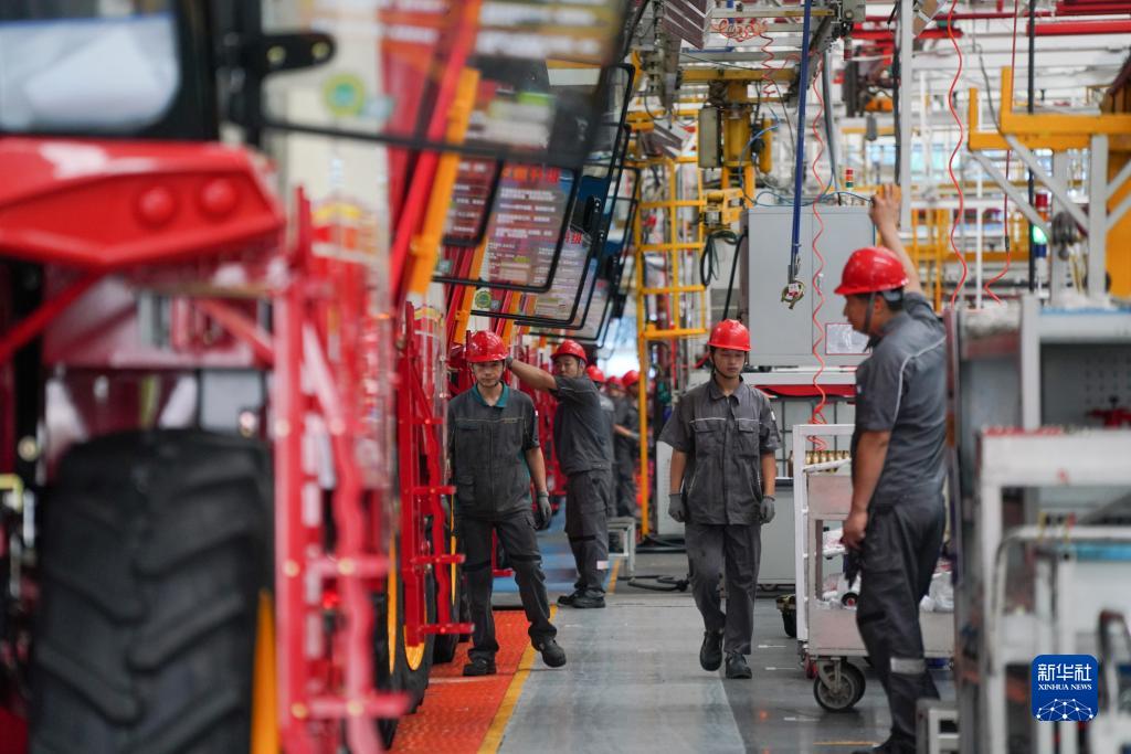 7月26日,在位於濰坊市的濰柴雷沃智慧農業科技股份有限公司,工人在車間流水線上忙碌。