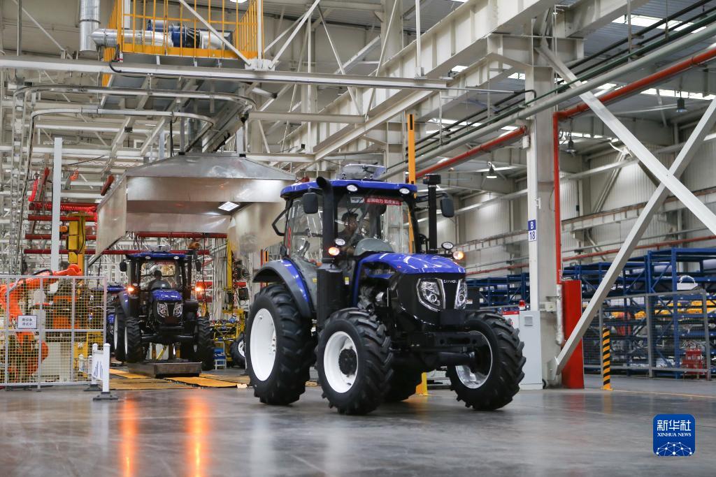 7月26日,在位於濰坊市的濰柴雷沃智慧農業科技股份有限公司,工人駕駛一輛拖拉機駛下生産線。