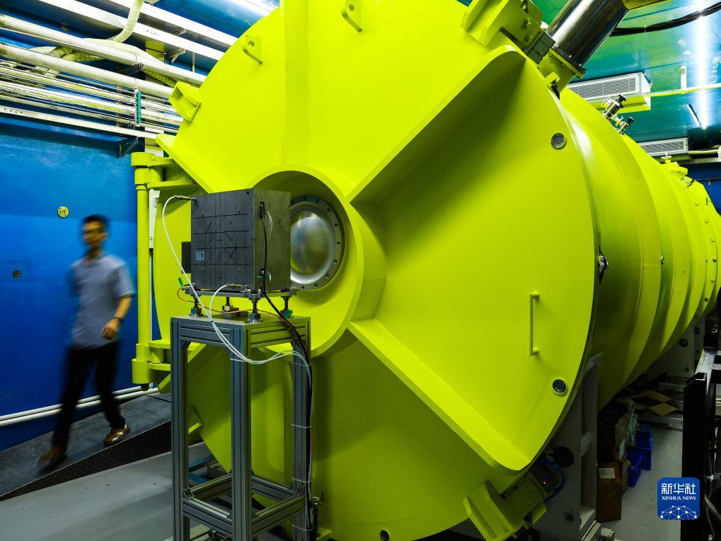 科研人員從中國散裂中子源的微小角中子散射譜儀散射腔系統旁經過(7月18日攝)。