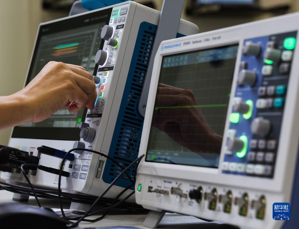 科研人員在中國散裂中子源加速器射頻技術實驗室操控儀表(7月18日攝)。