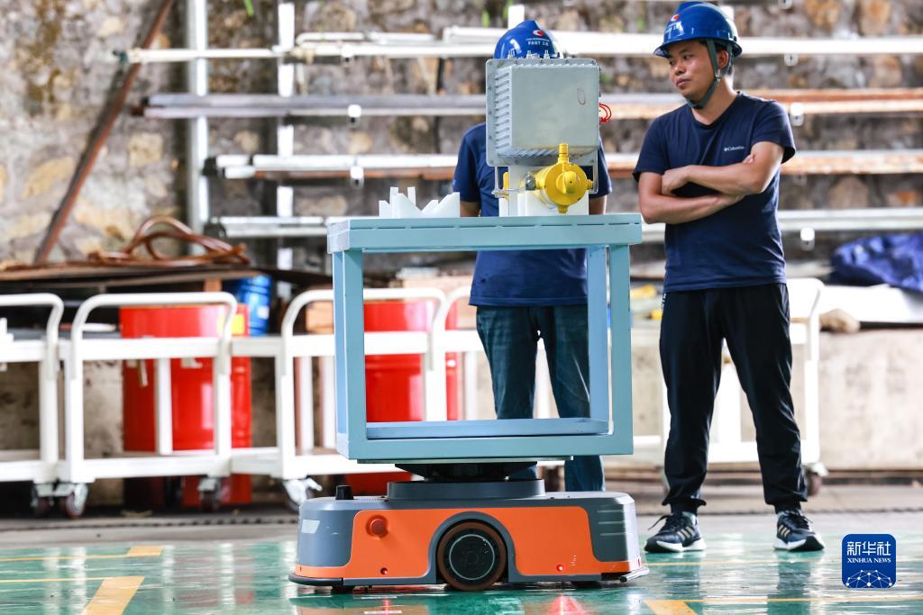 7月25日,工作人員在調試促動器自動化維護機器人平台系統。