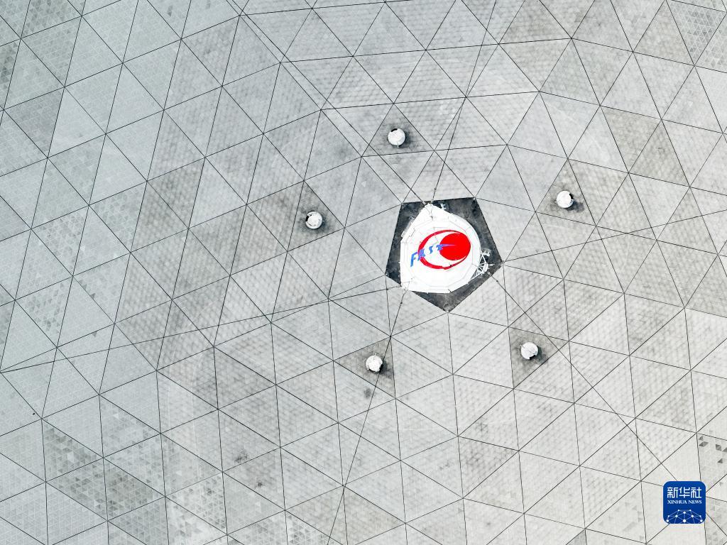 7月26日拍攝的“中國天眼”饋源艙(維護保養期間無人機拍攝)。