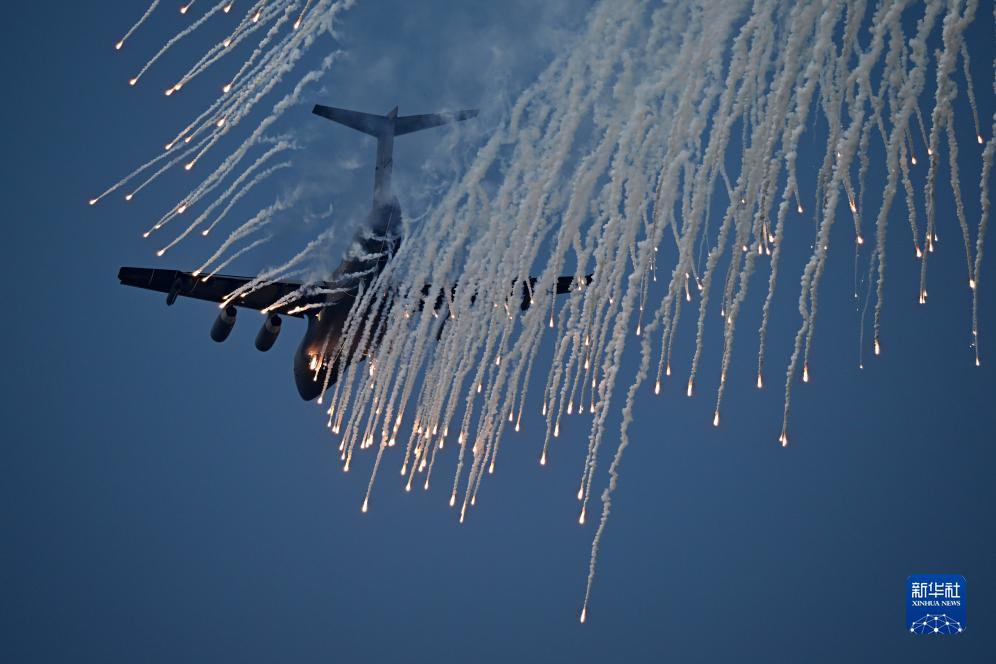 7月26日,在2023年空軍航空開放活動·長春航空展上,運油-20釋放紅外干擾彈。