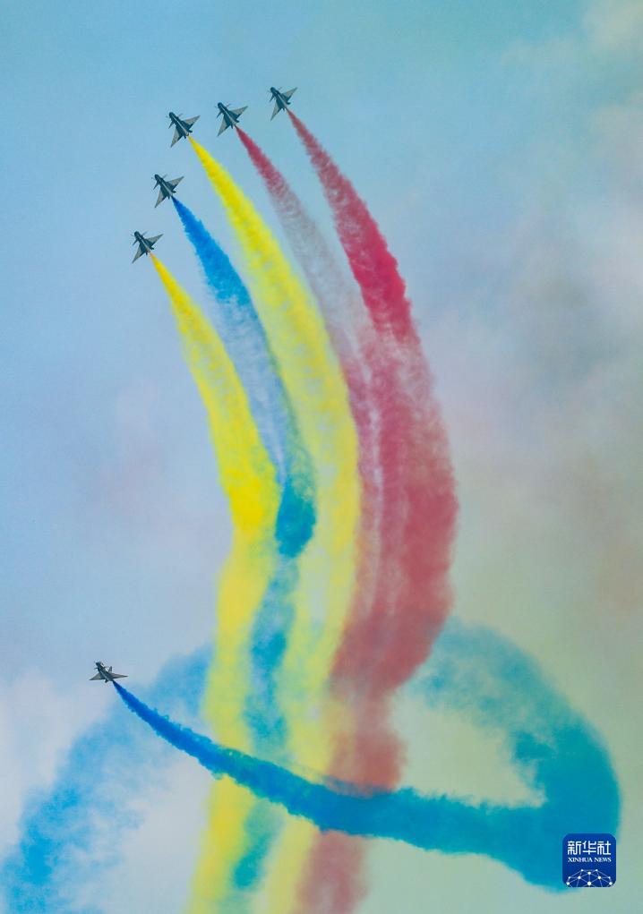 開幕式上,殲-20以四機編隊進行機動飛行展示,運油-20首次同時與殲-20、殲-16進行空中加油通場展示,殲-10S、殲-11BS首次進行異型機模擬空戰展示……本次航空開放活動集中展示了人民空軍加快建設世界一流空軍的階段性成果。
