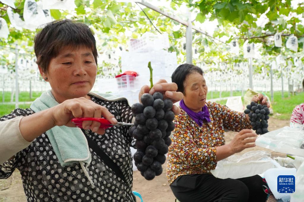 近日,山東省新泰市樓德鎮高標準葡萄大棚內種植的優質葡萄進入成熟期,果農們忙着收穫葡萄供應市場。近年來,樓德鎮已建成高標準葡萄大棚6000余畝,成為助力當地農民致富的特色産業。