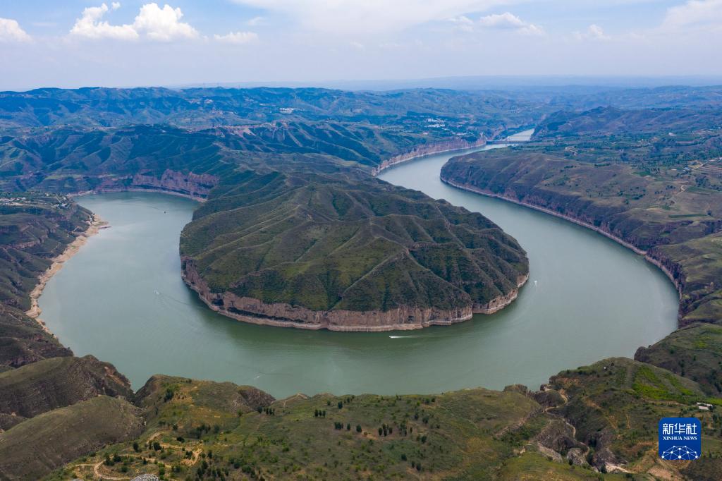夏日,從空中俯瞰位於山西省和內蒙古自治區交界處的黃河老牛灣,峽谷兩岸壁立千仞,黃河蜿蜒奔流不息,風景壯美如畫。