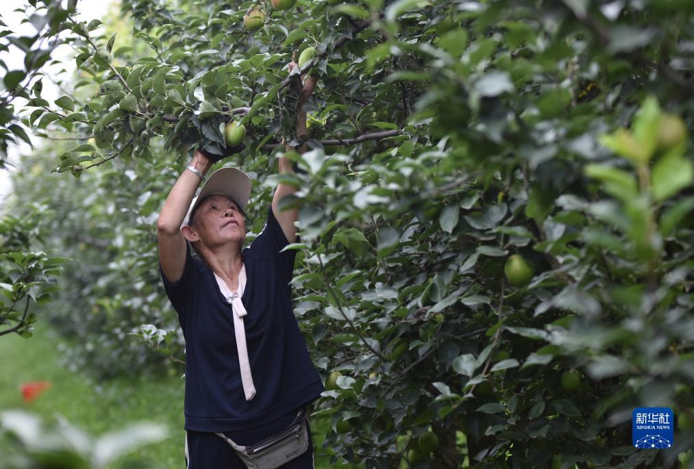 7月27日,河北省威縣張營鄉前花疃村果農在梨園採摘梨果。