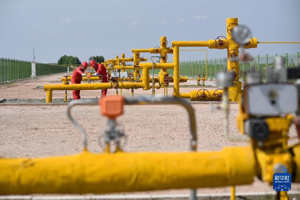 7月26日,工作人員在長慶油田蘇裏格氣田一處叢式井組進行巡檢。叢式井技術的推廣使氣田減少了用地。