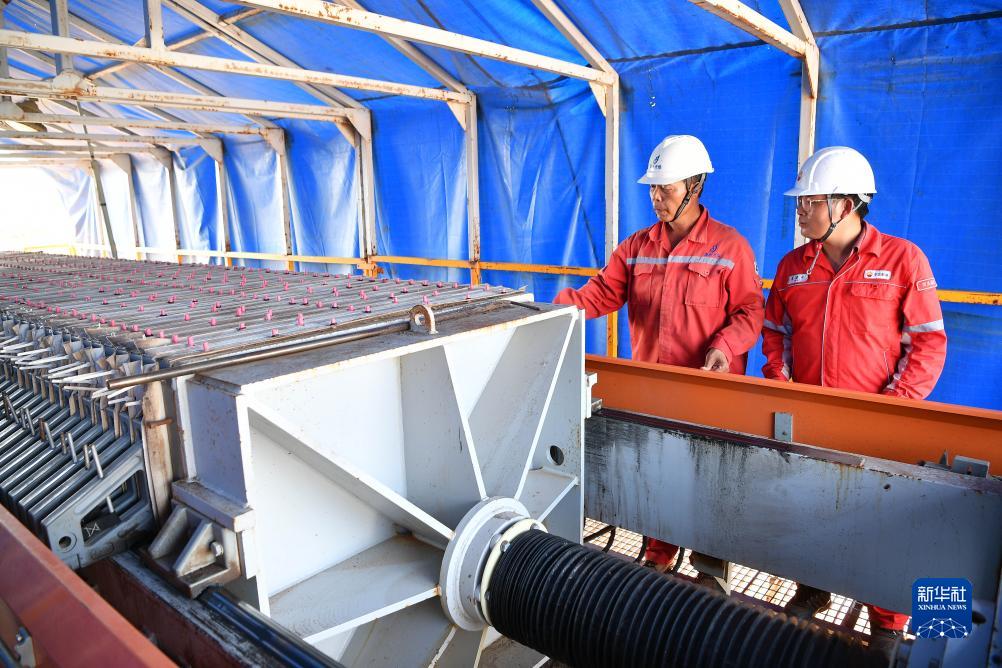 7月26日,在長慶油田蘇裏格氣田一處鑽井現場,技術人員在介紹鑽井岩屑無害化處理過程。