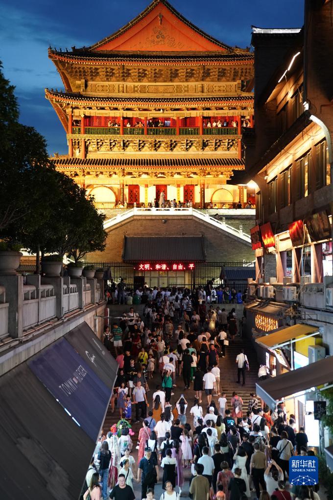 暑期以來,陜西西安市區的夜晚熱鬧非凡,各大景點和許多消費場所人氣旺盛。