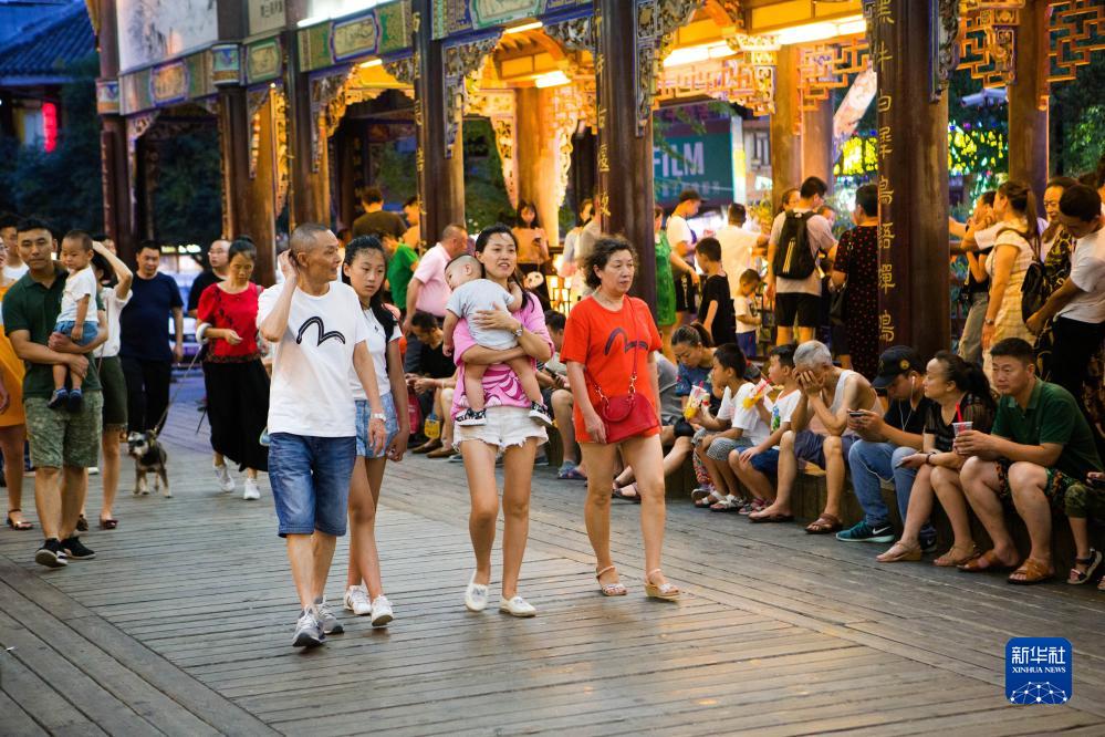 市民游客在都江堰市南橋裏休憩(6月24日攝)。