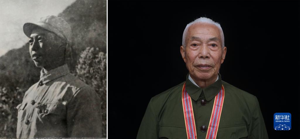 項鳳玉(拼版照片,2023年7月4日攝),1933年出生,1951年3月入伍,當年8月入朝,任炮8師48團後勤處通信員。