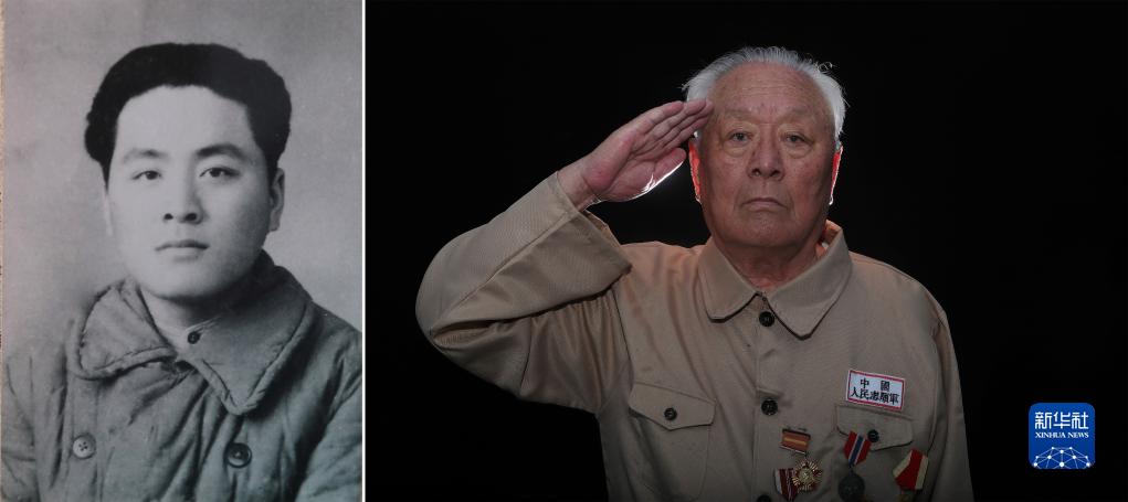 楊殿生(拼版照片,2020年8月13日攝),1932年1月出生,遼寧大連人。1947年11月參加革命工作。1950年10月編入中國人民志願軍暫編汽車44團2連當汽車助手,1958年10月從朝鮮回國。