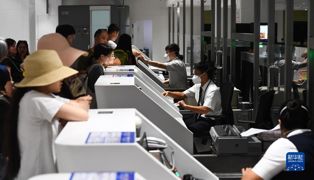 旅客在三亞鳳凰國際機場國際航站樓辦理乘機手續(7月26日攝)。