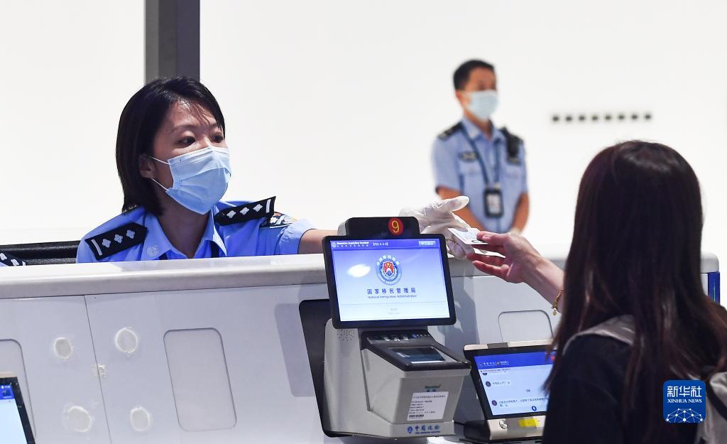 旅客在三亞鳳凰國際機場國際航站樓有序通關(7月26日攝)。