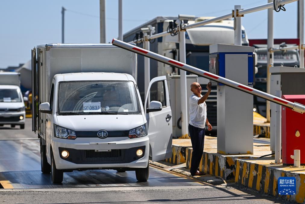 炎炎夏日,在新疆霍爾果斯公路口岸,一輛輛牽引車、自卸車和新能源小轎車排隊陸續駛出國門。眼下,越來越多的國産商品車通過霍爾果斯口岸出境,遠銷哈薩克斯坦、烏茲別克斯坦、俄羅斯等“一帶一路”沿線國家。