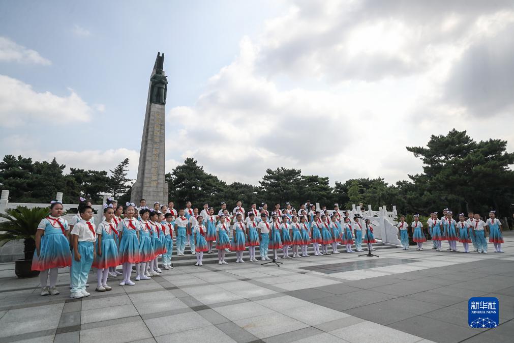 7月27日,來自中國少年先鋒隊瀋陽雷鋒朗誦團的孩子們在紀念碑前朗誦《誰是最可愛的人》(節選)。