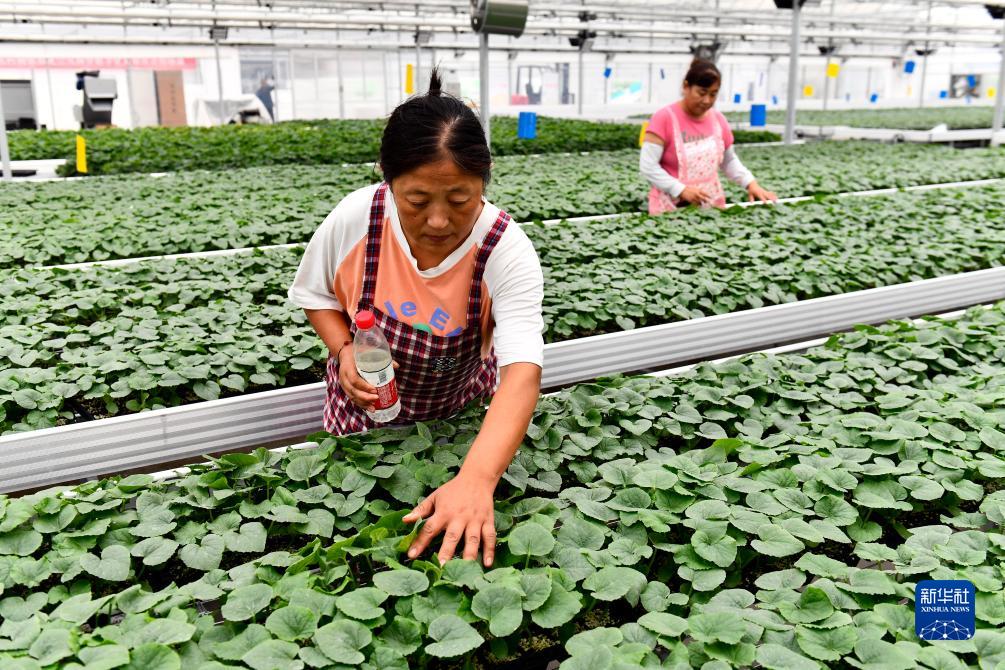 7月27日,在位於莒縣的山東種業集團數字化農業示範園,工作人員在管護種苗。