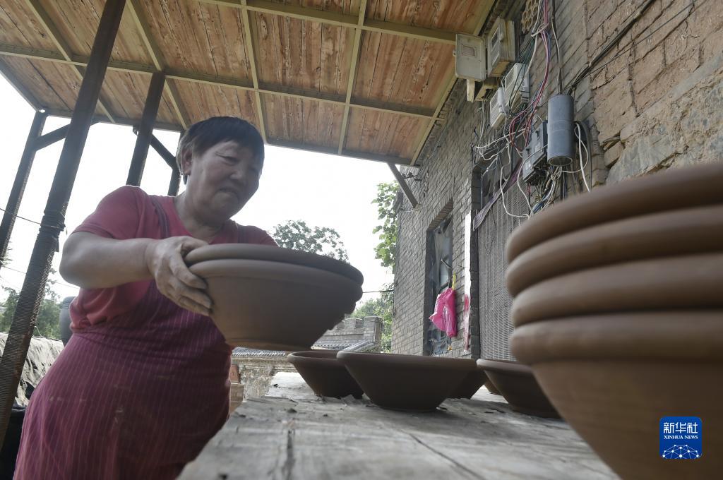 河南省沁陽市山王莊鎮盆窯村燒制黑陶歷史悠久,2009年盆窯黑陶製作技藝被列入河南省非物質文化遺産名錄,2021年該村被公布為河南省第六批傳統村落。近年來,當地以打造“盆窯黑陶小鎮”項目為引領,通過“公司+家庭作坊+農戶”的經營模式,帶動全村450多戶從事黑陶製造加工,黑陶産業年産值達5000余萬元,“陶鄉窯火”成為助力村民增收致富的鄉村新風景。