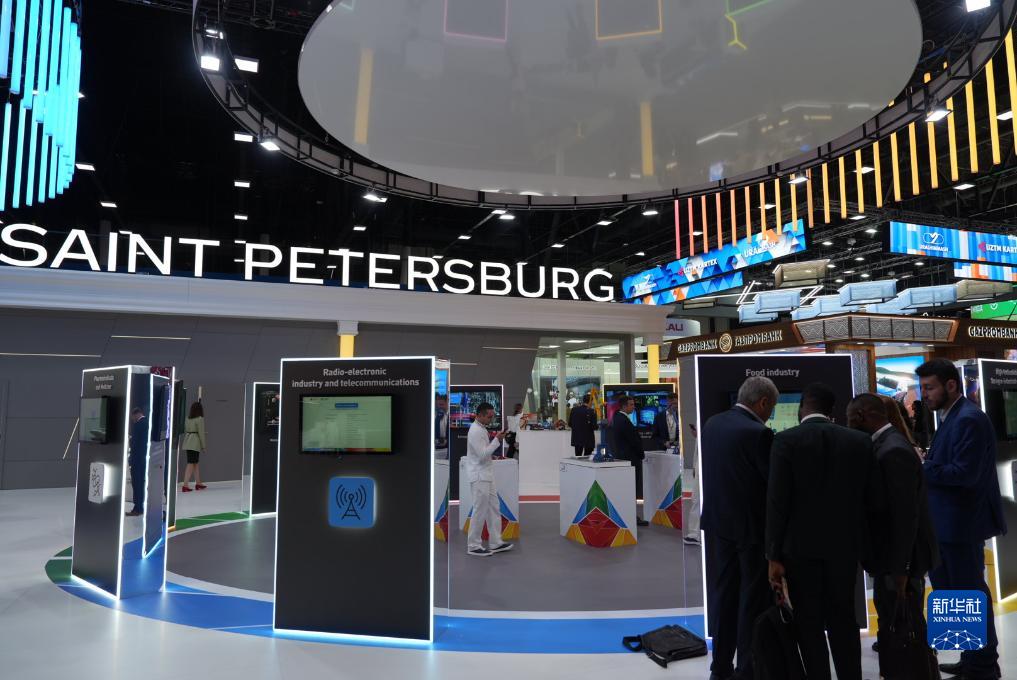 這是7月27日在俄羅斯聖彼得堡拍攝的俄非峰會聖彼得堡市展區。