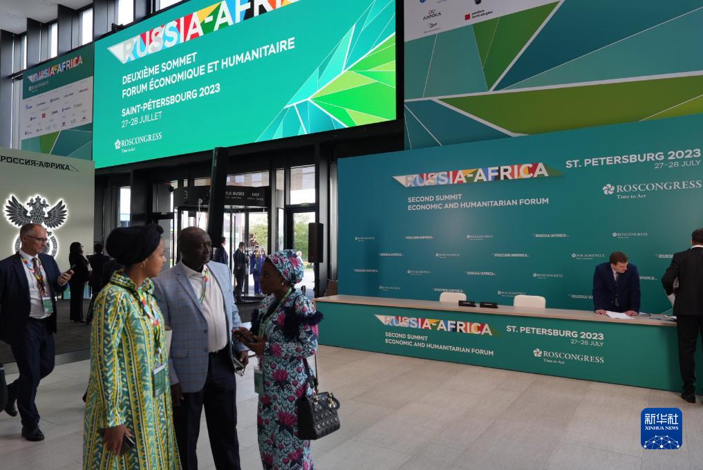 7月27日,在俄羅斯聖彼得堡,俄非峰會與會人員在會場交流。