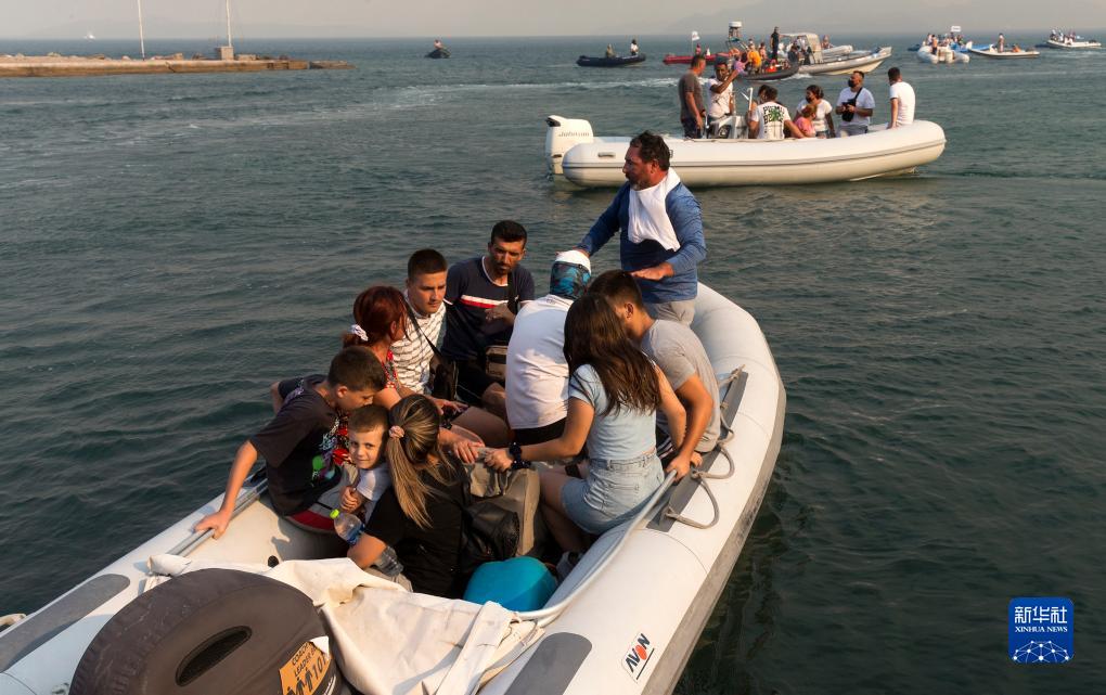 7月27日,人們從受到野火威脅的希臘沃洛斯地區新安希亞洛斯撤離。