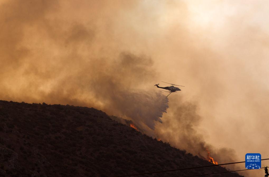 7月27日,消防直升機在希臘沃洛斯地區新安希亞洛斯滅火。