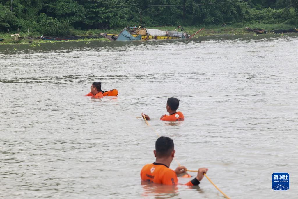 7月28日,在菲律賓黎剎省,菲律賓海岸警衛隊成員在傾覆船隻事故現場開展搜救行動。