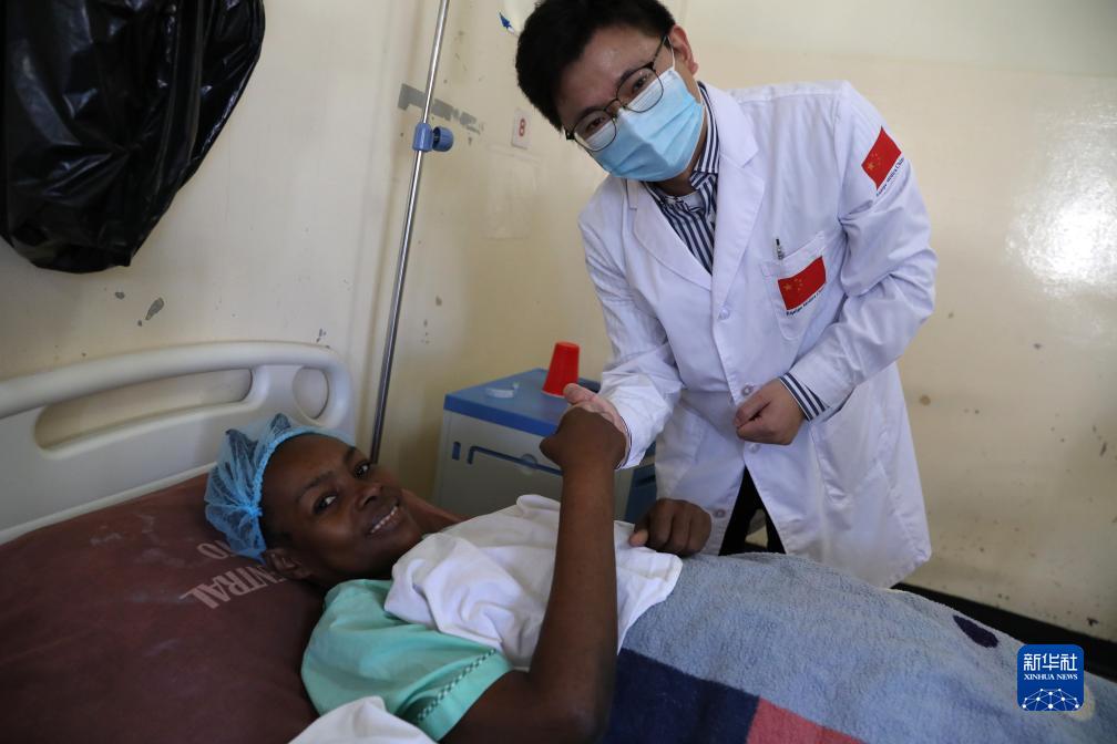 7月27日,在莫桑比克首都馬普托的馬普托中心醫院,中國醫療隊隊長、胰腺外科醫生張浩在病房查看術後患者。