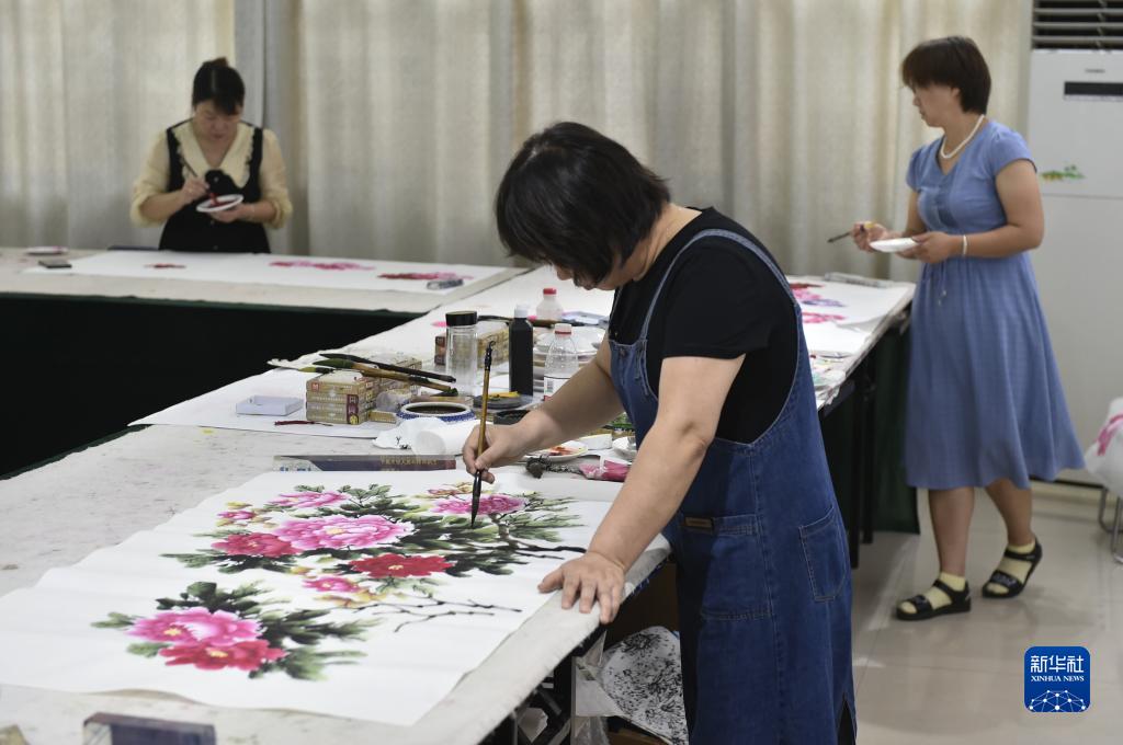 河南省洛陽市孟津區平樂鎮平樂社區以牡丹畫産業聞名,“平樂農民牡丹畫”起源於20世紀80年代。近年來,當地傳承推廣牡丹文化,加大畫師培養力度,積極發展牡丹畫産業,目前擁有畫師1000餘人,相關從業人員3000餘人,每年創作牡丹畫作品40余萬幅,採取線上線下銷售模式,作品除國內市場外還遠銷美國、日本、新西蘭等國家和地區,不僅豐富了群眾的精神文化生活,還帶動當地村民闖出一條文化傳承、文旅整合的鄉村振興發展新路。