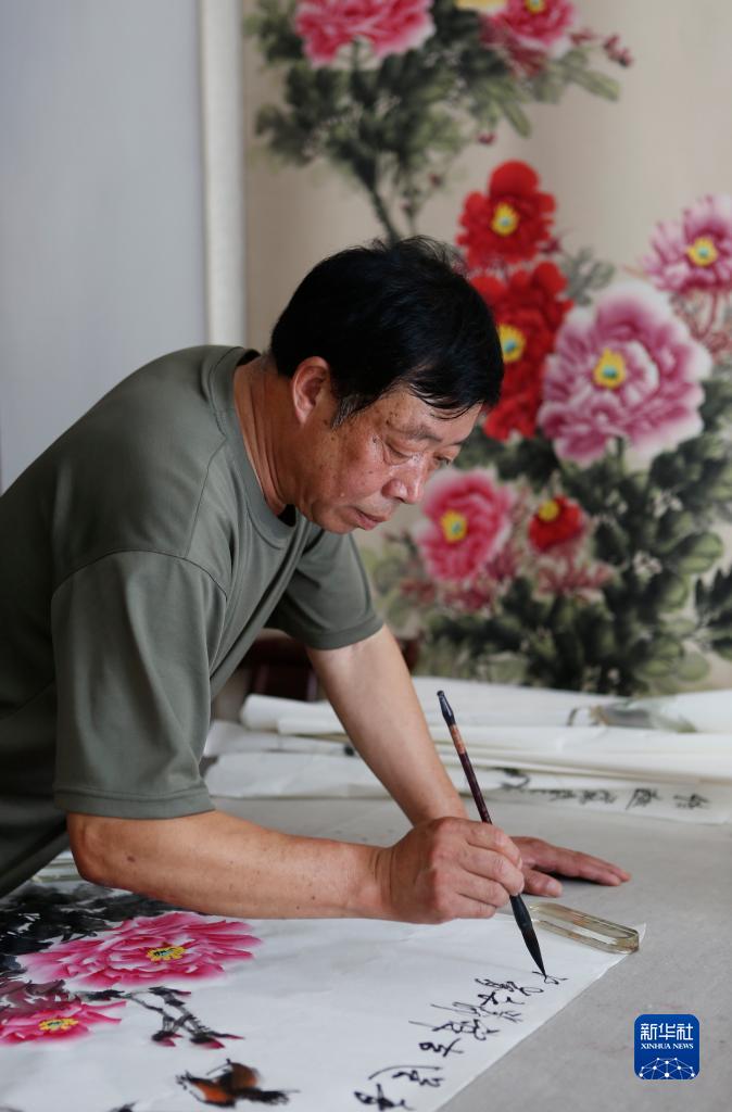河南省洛陽市孟津區平樂鎮平樂社區以牡丹畫産業聞名,“平樂農民牡丹畫”起源於20世紀80年代。近年來,當地傳承推廣牡丹文化,加大畫師培養力度,積極發展牡丹畫産業,目前擁有畫師1000餘人,相關從業人員3000餘人,每年創作牡丹畫作品40余萬幅,採取線上線下銷售模式,作品除國內市場外還遠銷美國、日本、新西蘭等國家和地區,不僅豐富了群眾的精神文化生活,還帶動當地村民闖出一條文化傳承、文旅整合的鄉村振興發展新路。